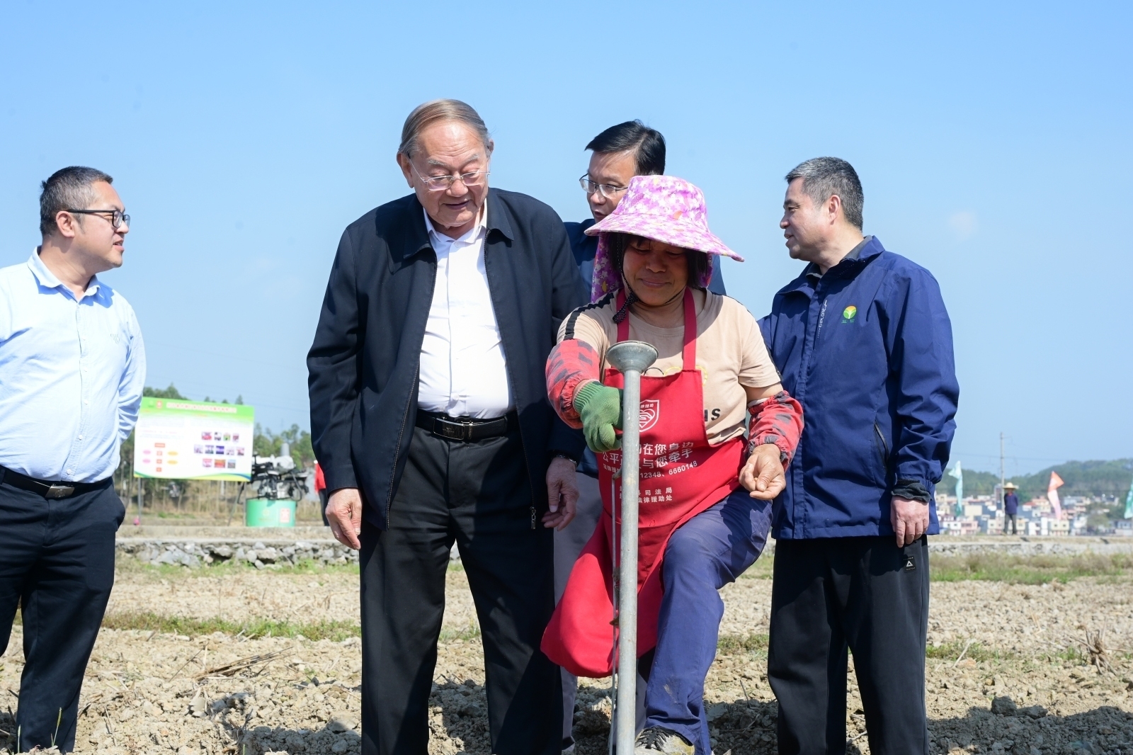 中国工程院院士罗锡文(左二)再次亲临封开春耕现场。