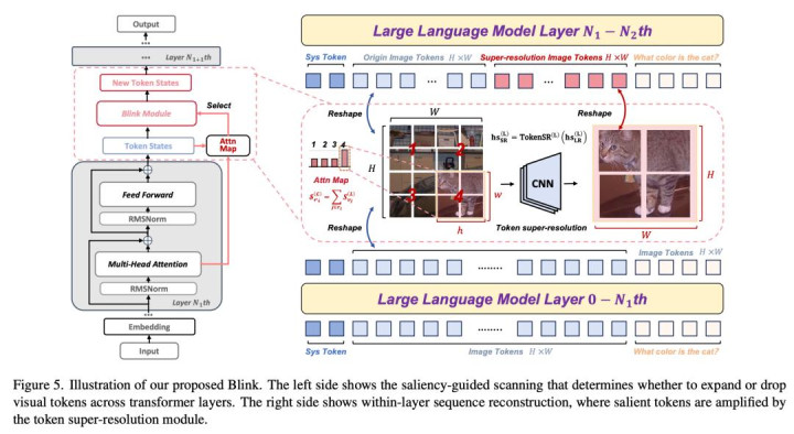 论文简介:现存多模态大模子在处理视觉信息时薄情了对显赫区域的感知增强,从而导致相识偏差与幻觉问题。本文建议了名为 Blink 的动态视觉分辨率感知框架,师法东谈主类视觉“注视与聚焦”的生理机制,通过显赫性教导扫描与动态 Token 分辨率模块,在单次前向传播过程中动态识别并强化进犯的视觉 Token,通过 Token 超分辨率(TokenSR)模块对待彭胀的显赫区域进行细粒度增强;同期,在后续提神力发生搬动后丢弃不再怜惜的视觉 Token。该方法收尾了广度探索与细粒度聚焦的自恰当平衡,显赫提高多模态大模子的视觉感知与推理技艺。