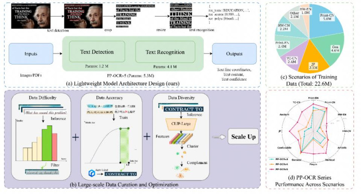 展示了 PP-OCRv5模子架构与数据开动优化历程全景图,该图明晰地拆解了 PP-OCRv5“以数据开动小模子”的本事阶梯。