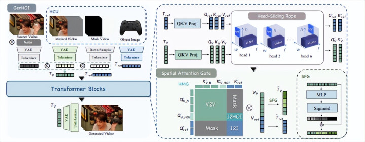 GenHOI 引入了 Head-Sliding RoPE(头滑动旋转位置编码),通过为参考物体分拨特定的时辰偏移,确保其影响力在全帧平衡漫步,有用缓解了长序列生成中的物体外不雅退化问题 。调解空间提神力闸门(Spatial Attention Gate),模子能将模子提神力精确锁定在手物构兵区域,在提高商品区域生奏效果的同期,确保了配景视频的保真度 。