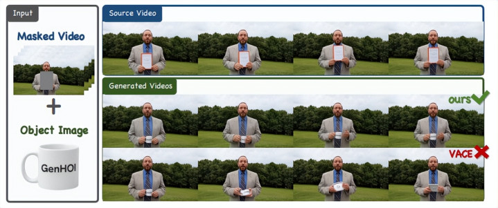 GenHOI 则尝试通落伍空注入机制的优化,在动态交互过程中提高物体的身份一致性,力争在荫庇或大幅度位移场景下,米兰体彩app呈现出更天然、结构更稳健的互动视觉效果 。