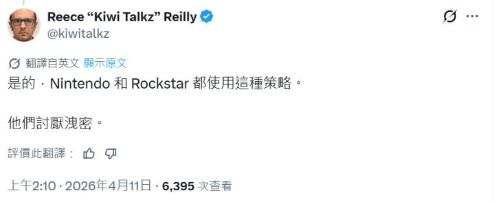 另别称音问东说念主士KiwiTalkz回复说念:“是的,任天国和R星王人接收这种战略握内鬼,他们敌对泄密”。