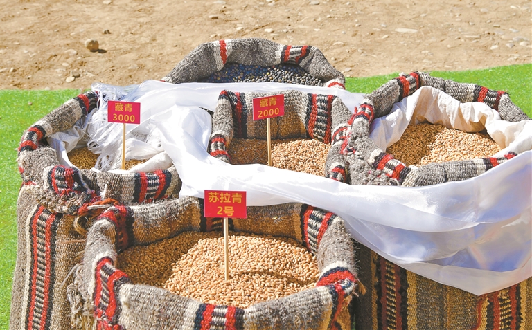 图为墨竹工卡县唐加乡春耕春播庆典上展示的各样青稞种子。记者 索朗旺久 摄
