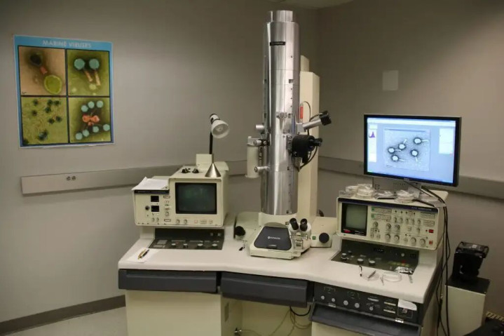 这是当今的电子束显微镜,知晓度和放大倍率都远超光学显微镜,能明晰地看到微生物的细节: