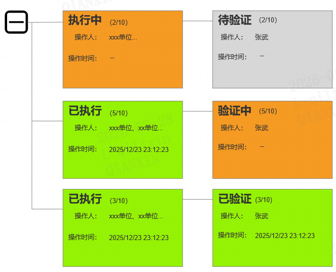 再者,针对状况的变更触发机制,一般而言需要依据不同用户脚色所认真经由节点,由不同脚色的用户手动进行触发,举例审核者审核之后,状况需要由待审核变更为已审核;实施者实施完成之后,则状况则需要由待实施变更为已实施。但若存在多便条任务的情况,则需要推敲父任务的变更机制,不再是东谈主员触发那么绵薄,而是由系统监测自动触发辨别,举例当多便条任务都是待实施时,则父任务也应为待实施状况;而当统统子任务的状况都变更为待考证时,则夫东谈主吴状况也应该变更为待考证状况。