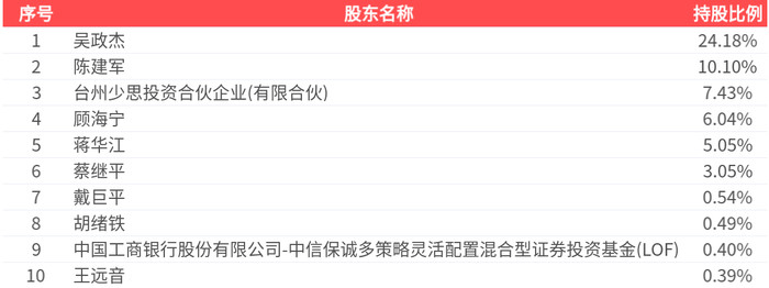 公司鼓励户数为1.02万户,前十大鼓励合手股数目为6113.67万股,占总股本比例为57.67%,前十大鼓励合手股情况如下: